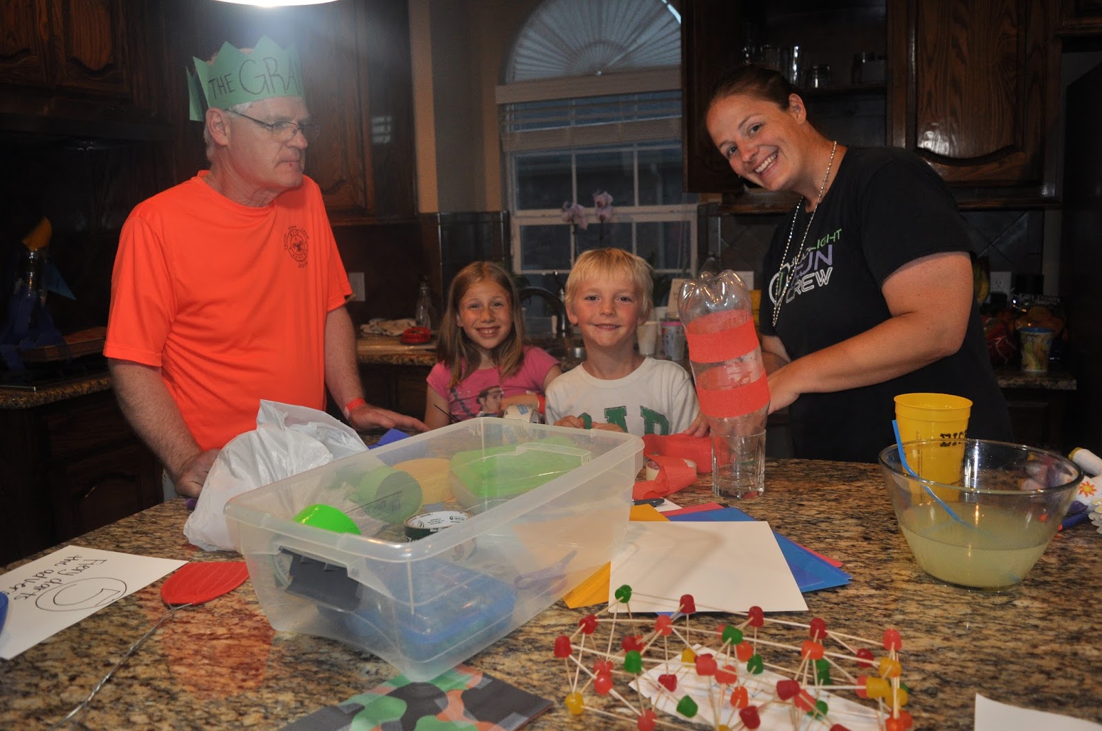 We were able to host the opening introduction night at our house and it was one of my most favorite parts of the whole experience! We were introduced to the theme, listened to some scriptures and powerful quotes on putting on the whole armor of God so we can be strong as individuals and as families, watched uncle Austin act out the difference between wearing our "armor" and not wearing any at all with the fiery darts shot at him by Grandpa (quite fun and entertaining to see!!) presented our individual family shields, and split up into colored groups- shields, helmets, swords, breastplates, and more and divided up into stations where we made fun memories and learned how important it is to ARMOR UP!!!